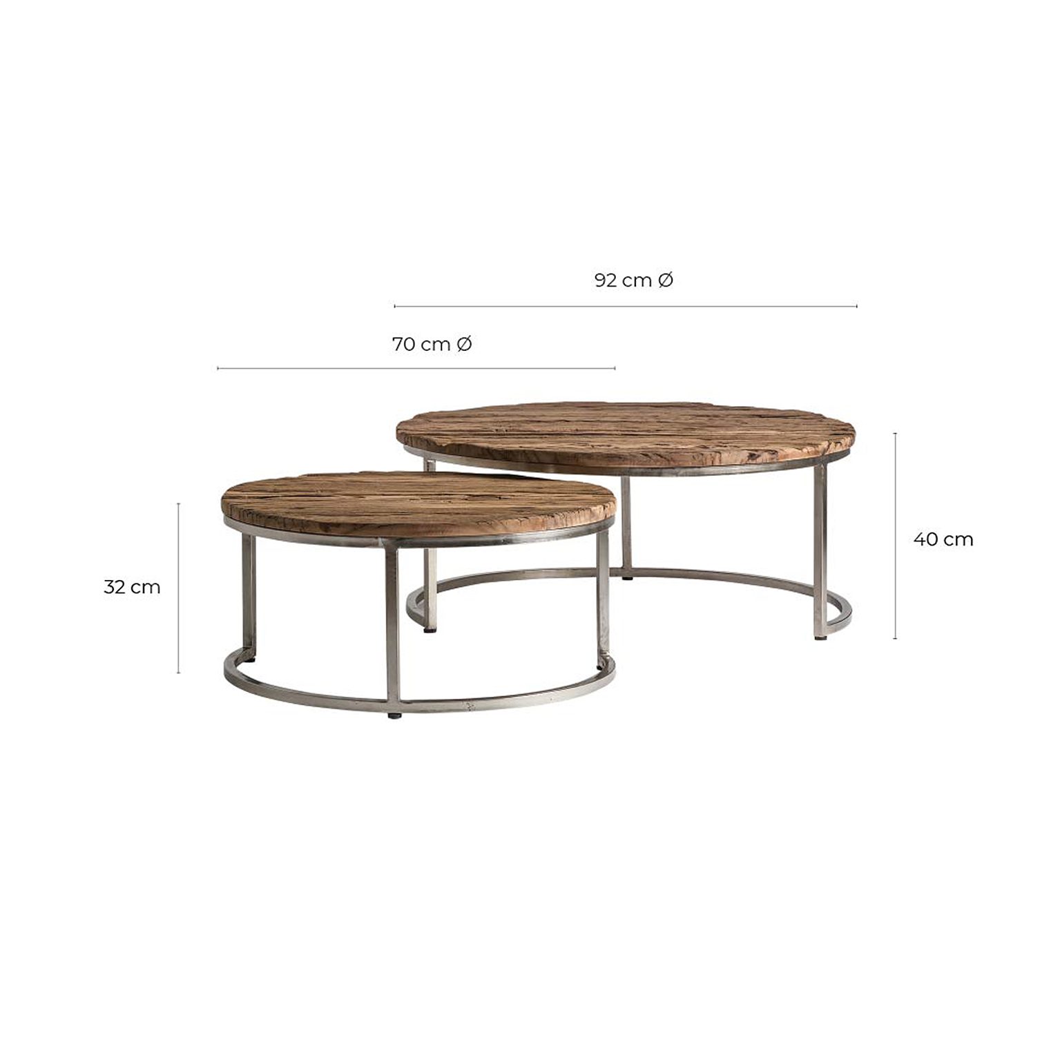 MESA DE CENTRO J/2 AKRON, EN COLOR NATURAL/PLATA ENVEJECIDO, DE ESTILO INDUSTRIAL. FABRICADO EN HIERRO, COMBINADO CON MADERADE TEKA RECICLADA.