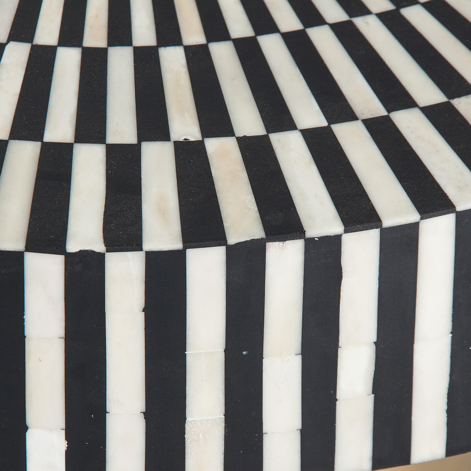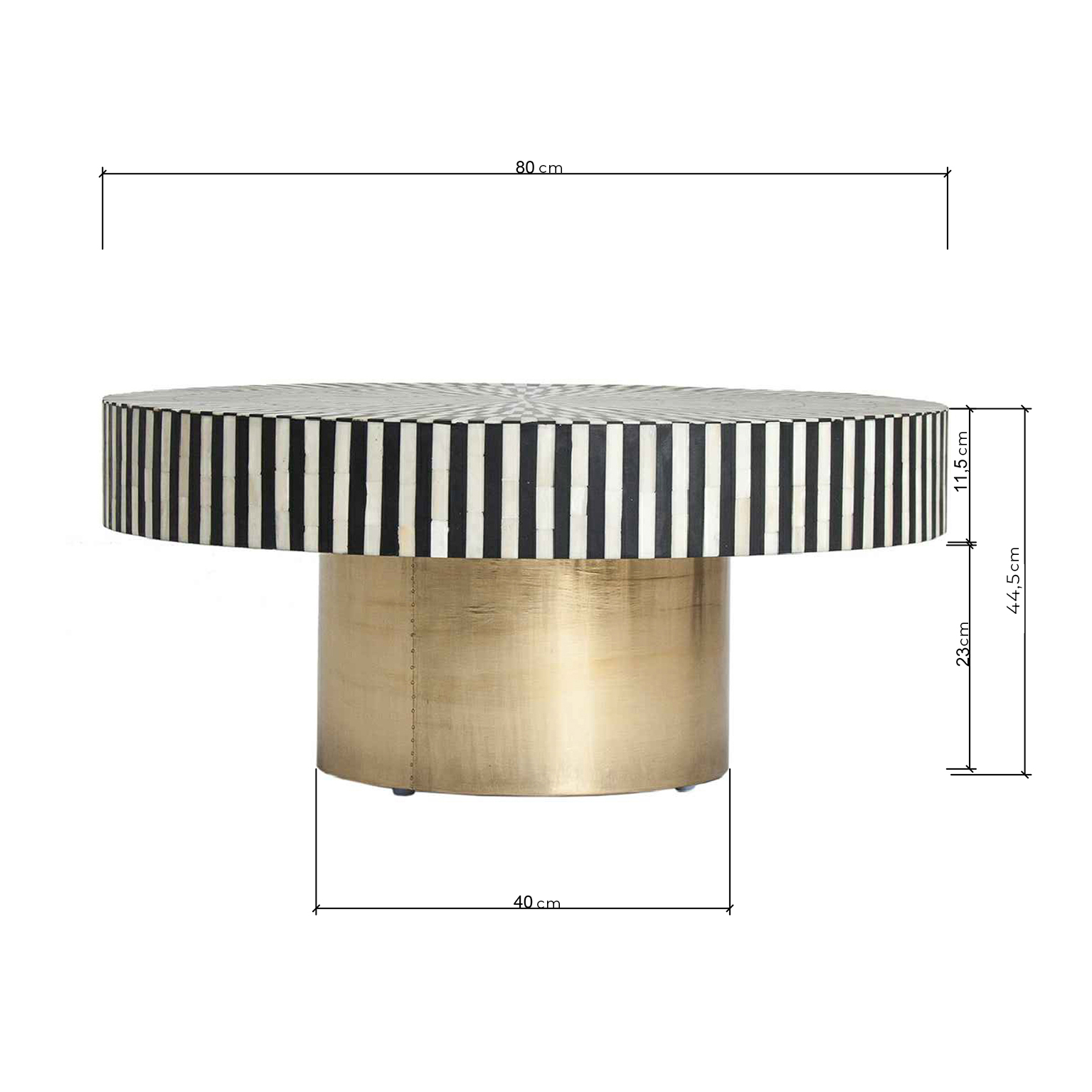 MESA DE CENTRO HUESO RUST, EN COLOR NEGRO/BLANCO/ORO, DE ESTILO ART DECO. FABRICADO EN HIERRO, COMBINADO CON HUESO.