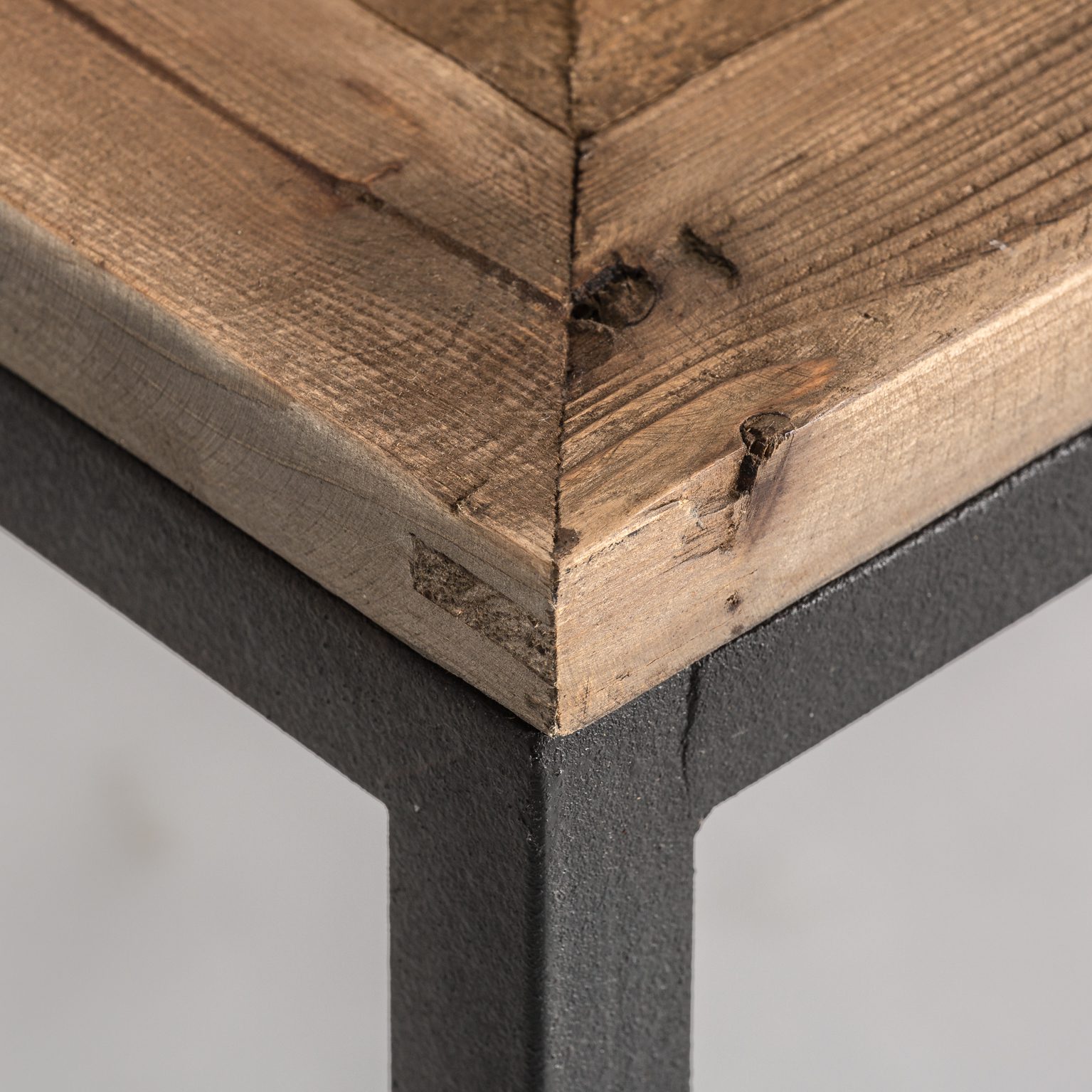MESA DE CENTRO RECTANGULAR VICHY, EN COLOR NEGRO/NATURAL ENVEJECIDO, DE ESTILO INDUSTRIAL. FABRICADO EN MADERA DE PINO RECICLADO, COMBINADO CON HIERRO. FABRICACIÓN ARTESANAL. ENTENDEMOS LAS VARIACIONES DE TONALIDAD O CIERTAS IMPERFECCIONES (GRIETAS, NUDOS