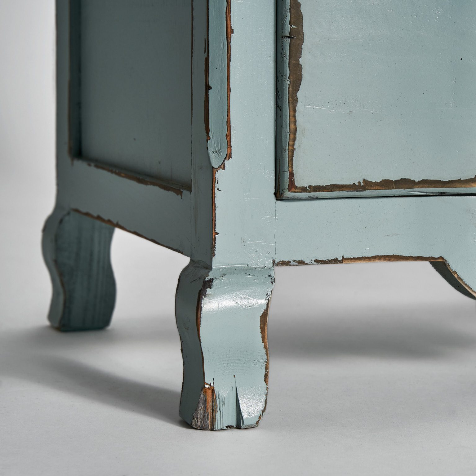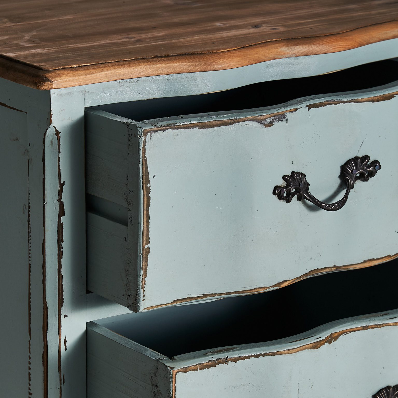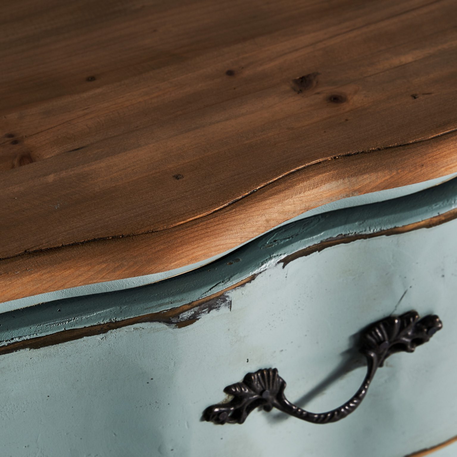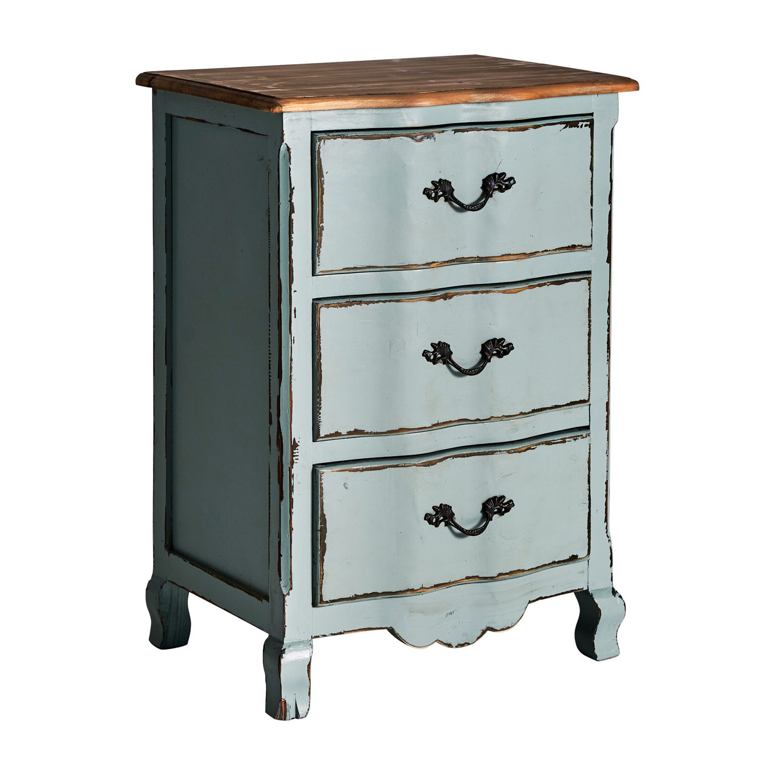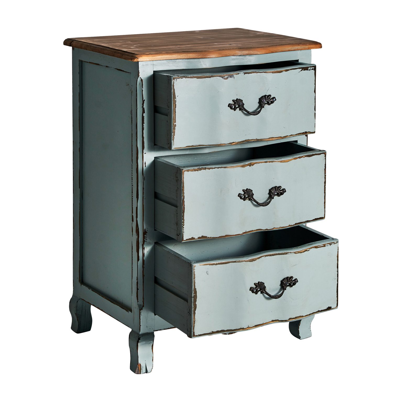 MESITA KOPER, EN COLOR AZUL ENVEJECIDO, DE ESTILO SHABBY CHIC. FABRICADO EN MADERA DE OLMO.
