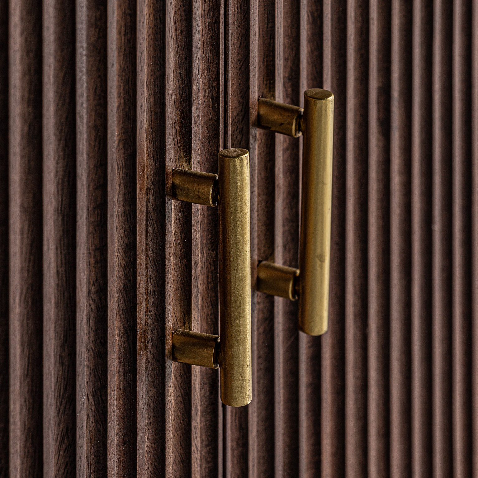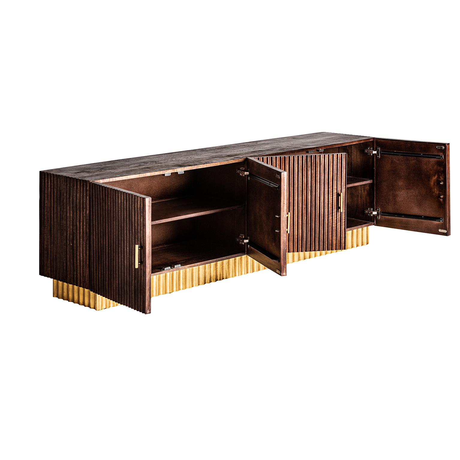 MUEBLE T.V. MESIA, EN COLOR MARRÓN, DE ESTILO ART DECO. FABRICADO EN MADERA DE MANGO.