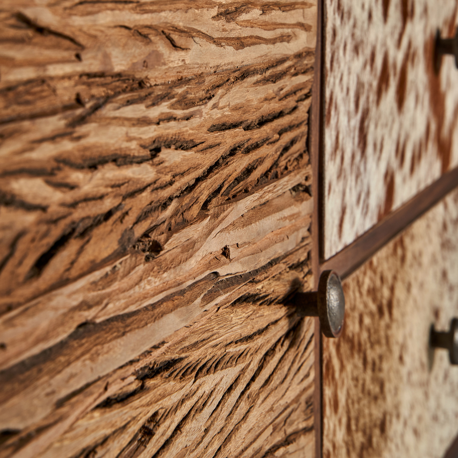 MUEBLE T.V. TEXAS, EN COLOR MARRÓN/BEIGE, DE ESTILO NÓRDICO. FABRICADO EN MADERA DE MANGO, COMBINADO CON HIERRO. PRODUCTO DESMONTABLE.