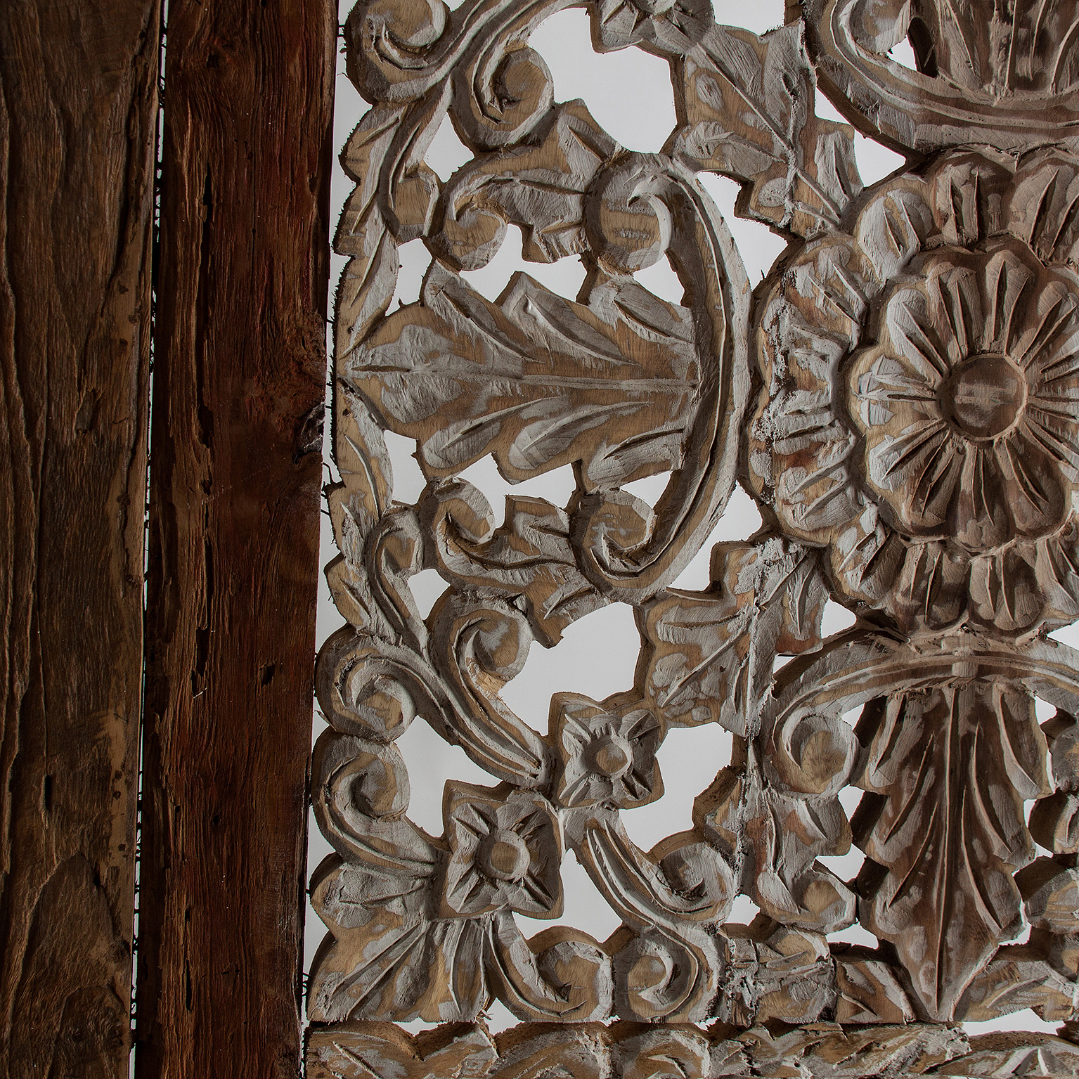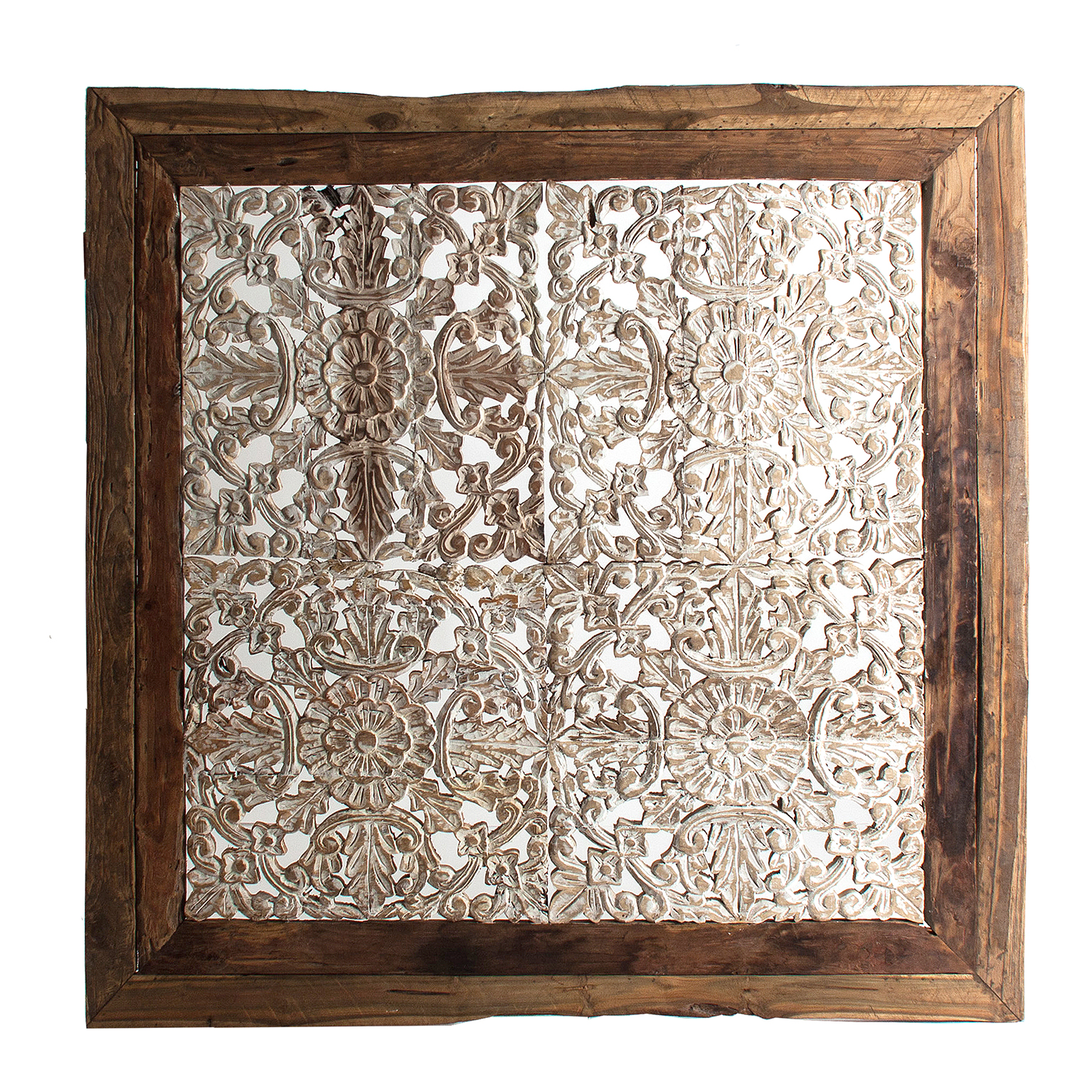 PANEL DECORATIVO TASKENT, EN COLOR BLANCO/NATURAL ENVEJECIDO, DE ESTILO ÉTNICO. FABRICADO EN MADERA TROPICAL.