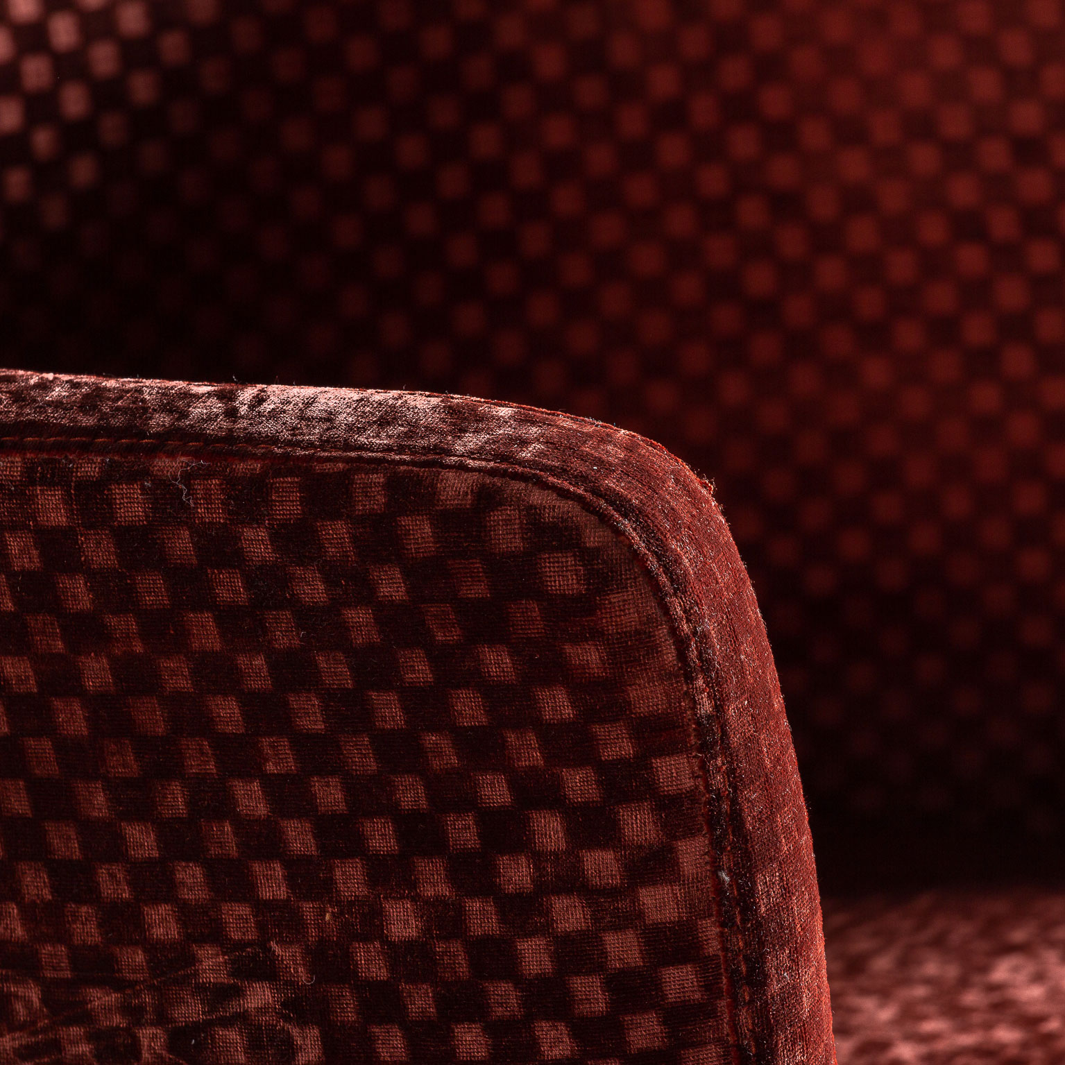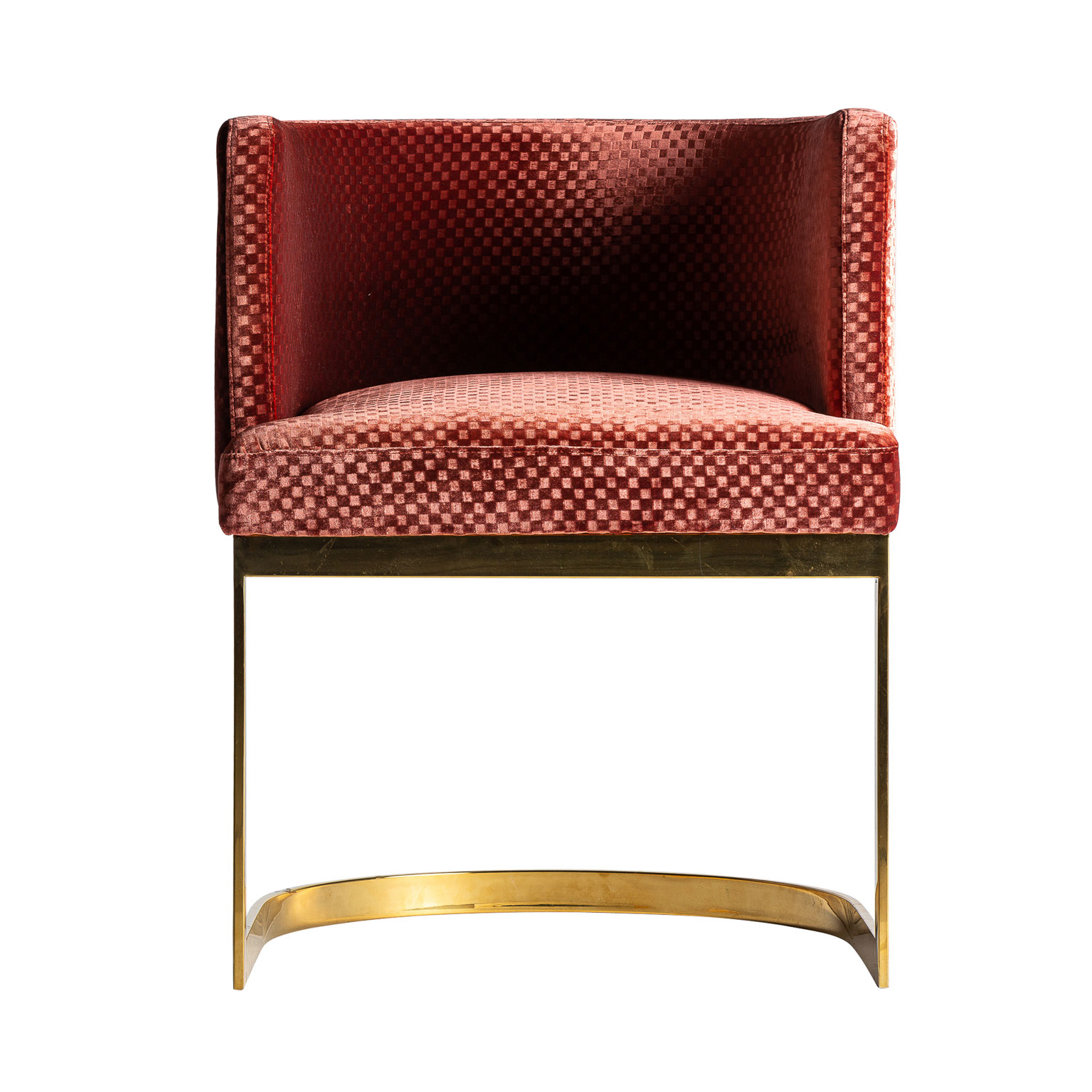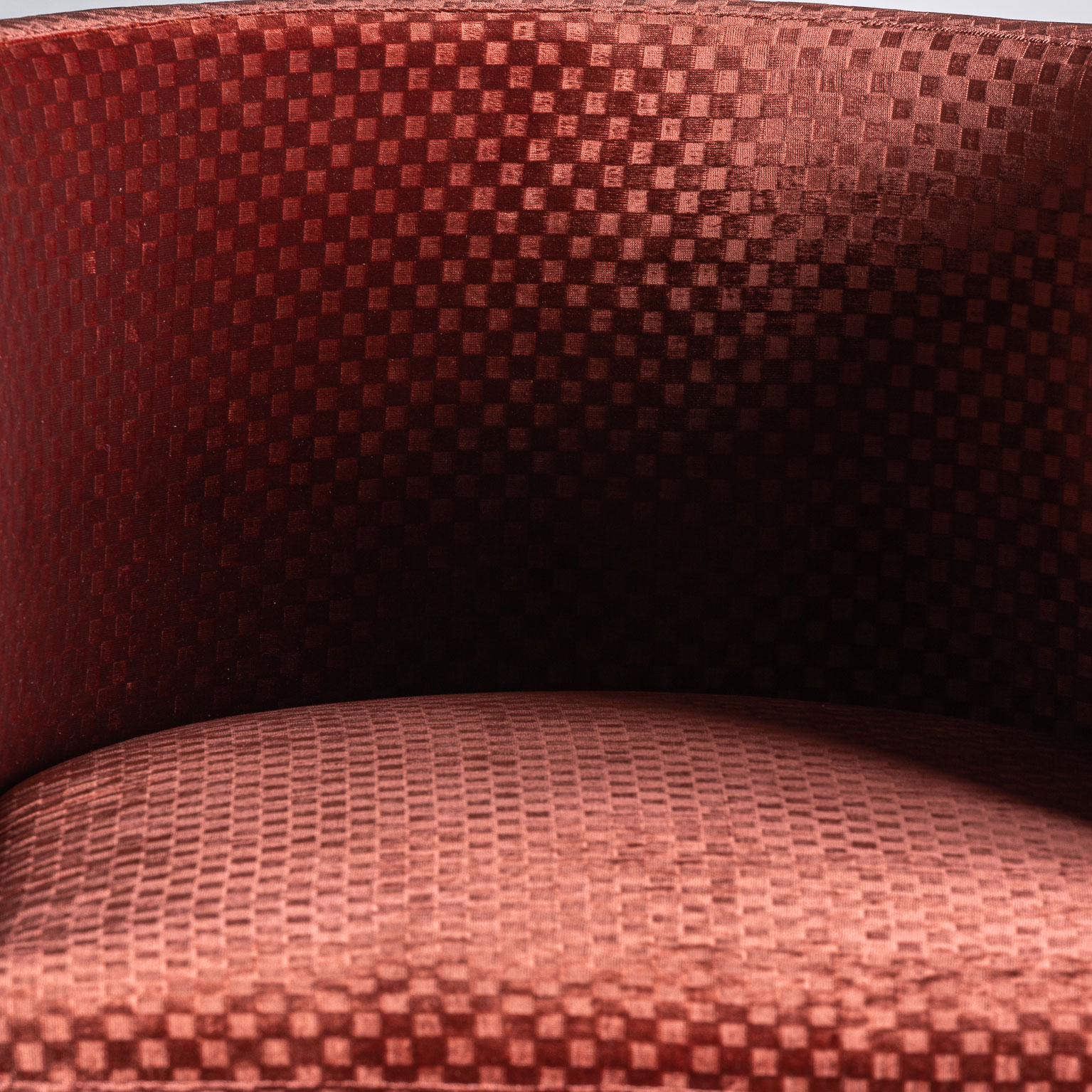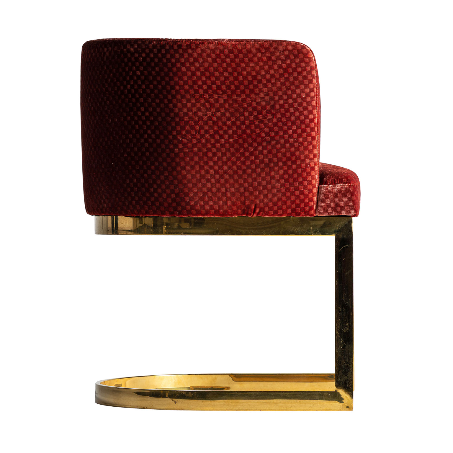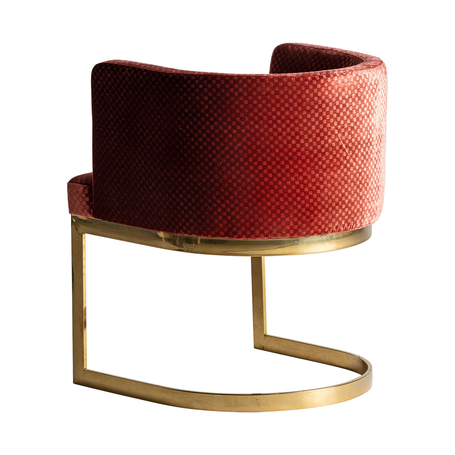 SILLA BETILIAR, EN COLOR BURDEOS, DE ESTILO ART DECO. FABRICADO EN ACERO, COMBINADO CON MADERA DE PINO Y TERCIOPELO.