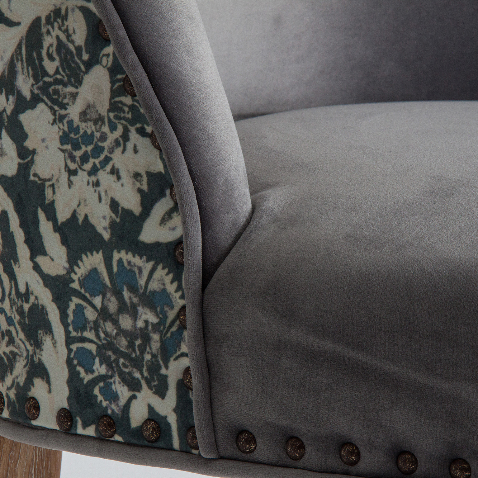SILLA FAENZA, EN COLOR GRIS, DE ESTILO ECLÉCTICO. FABRICADO EN TERCIOPELO.