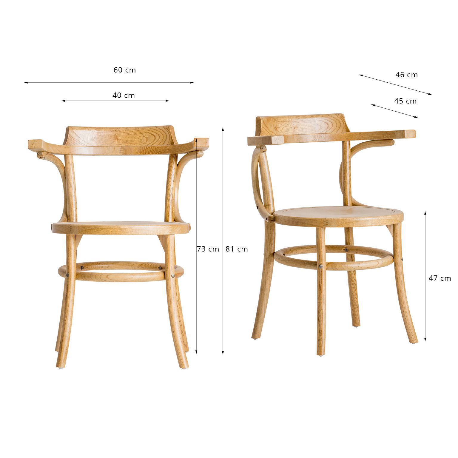 SILLA MUNSTER, EN COLOR NATURAL, DE ESTILO CLÁSICO. FABRICADO EN MADERA DE OLMO, COMBINADO CON MADERA CONTRACHAPADA.