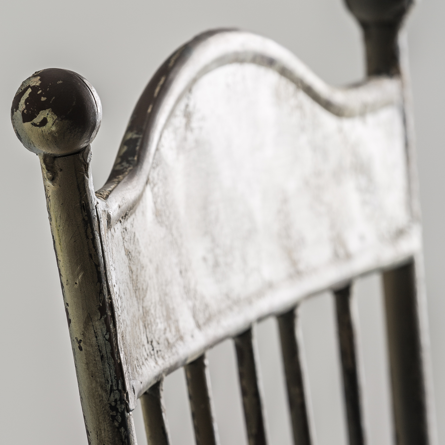 SILLA OLBIA, EN COLOR GRIS ENVEJECIDO, DE ESTILO PROVENZAL. FABRICADO EN HIERRO.