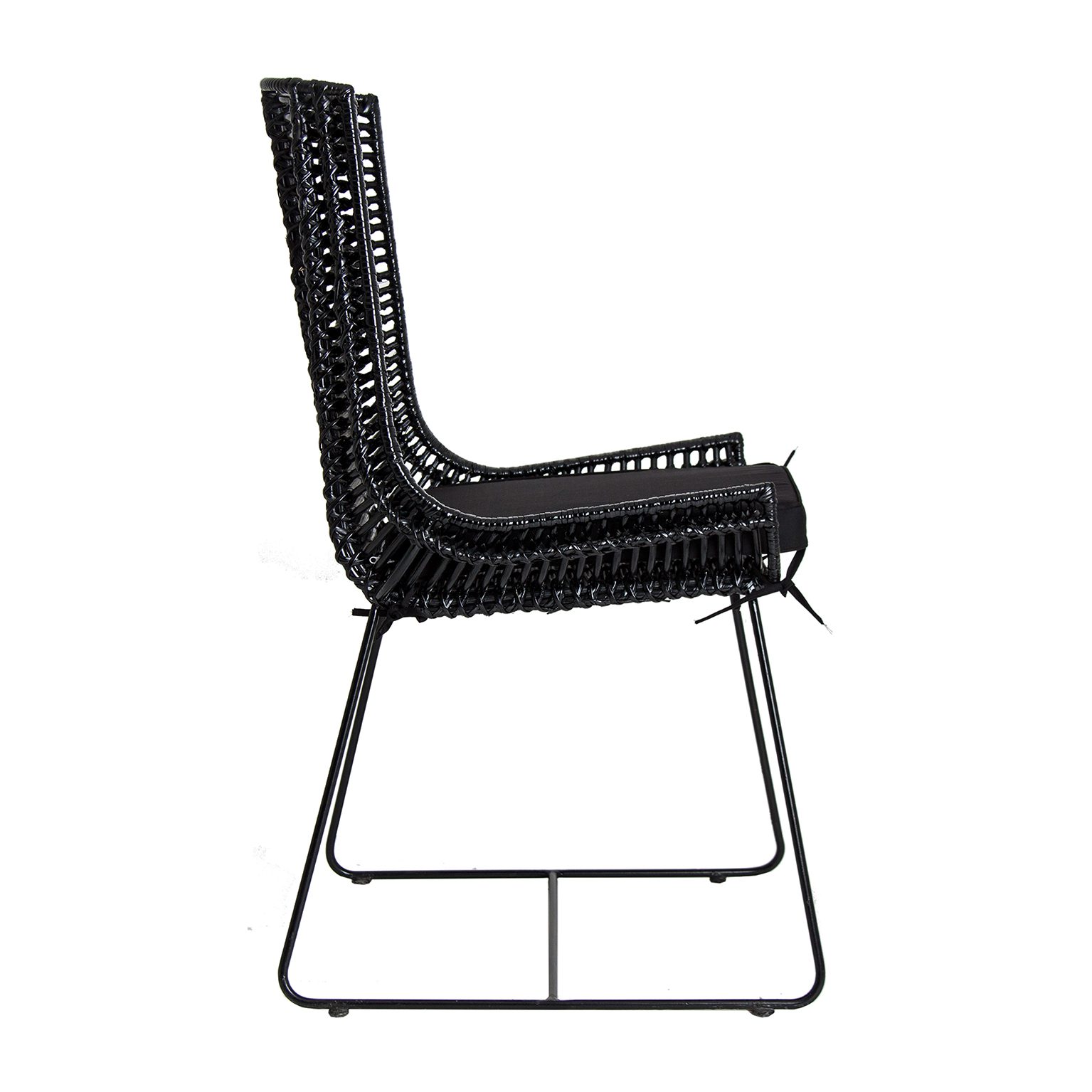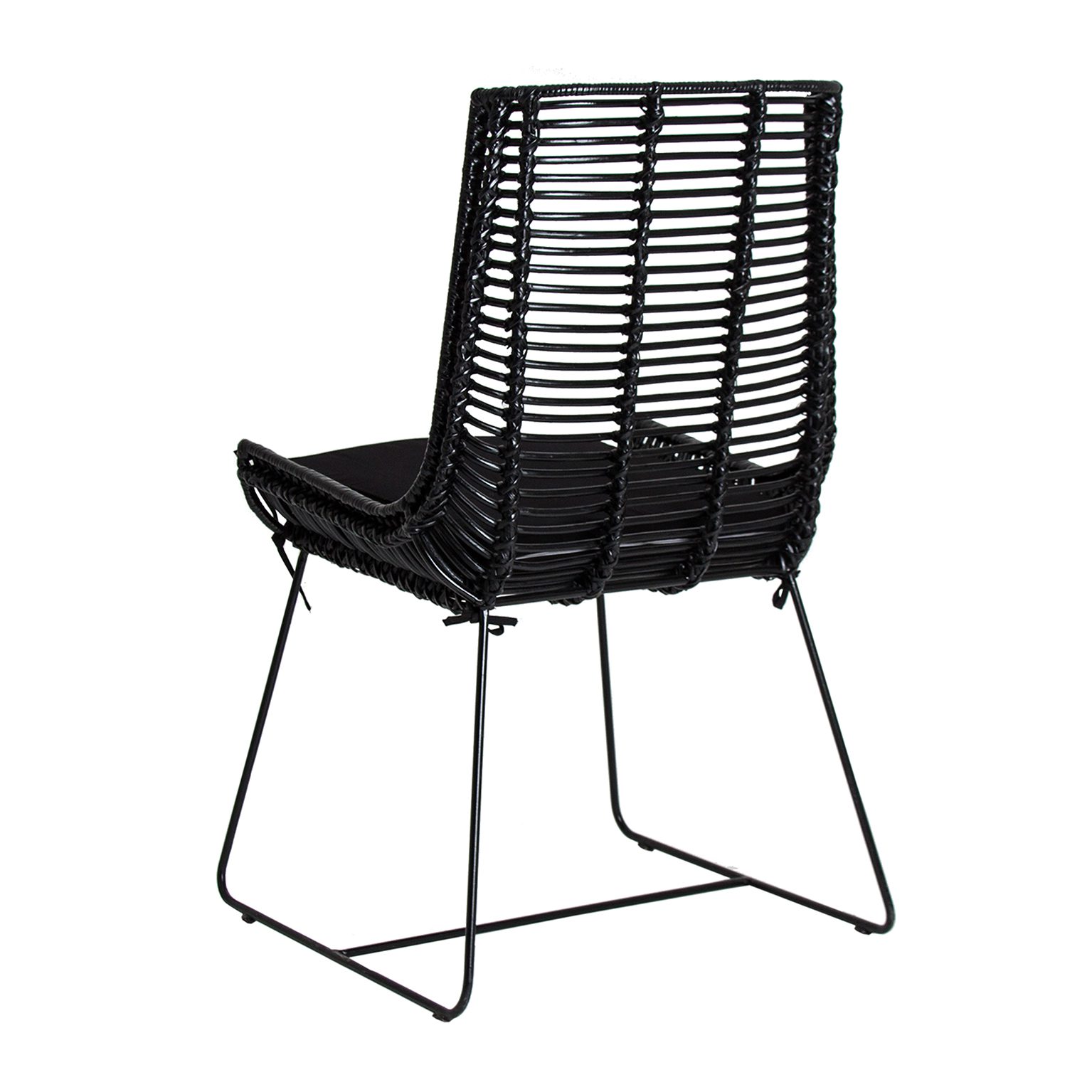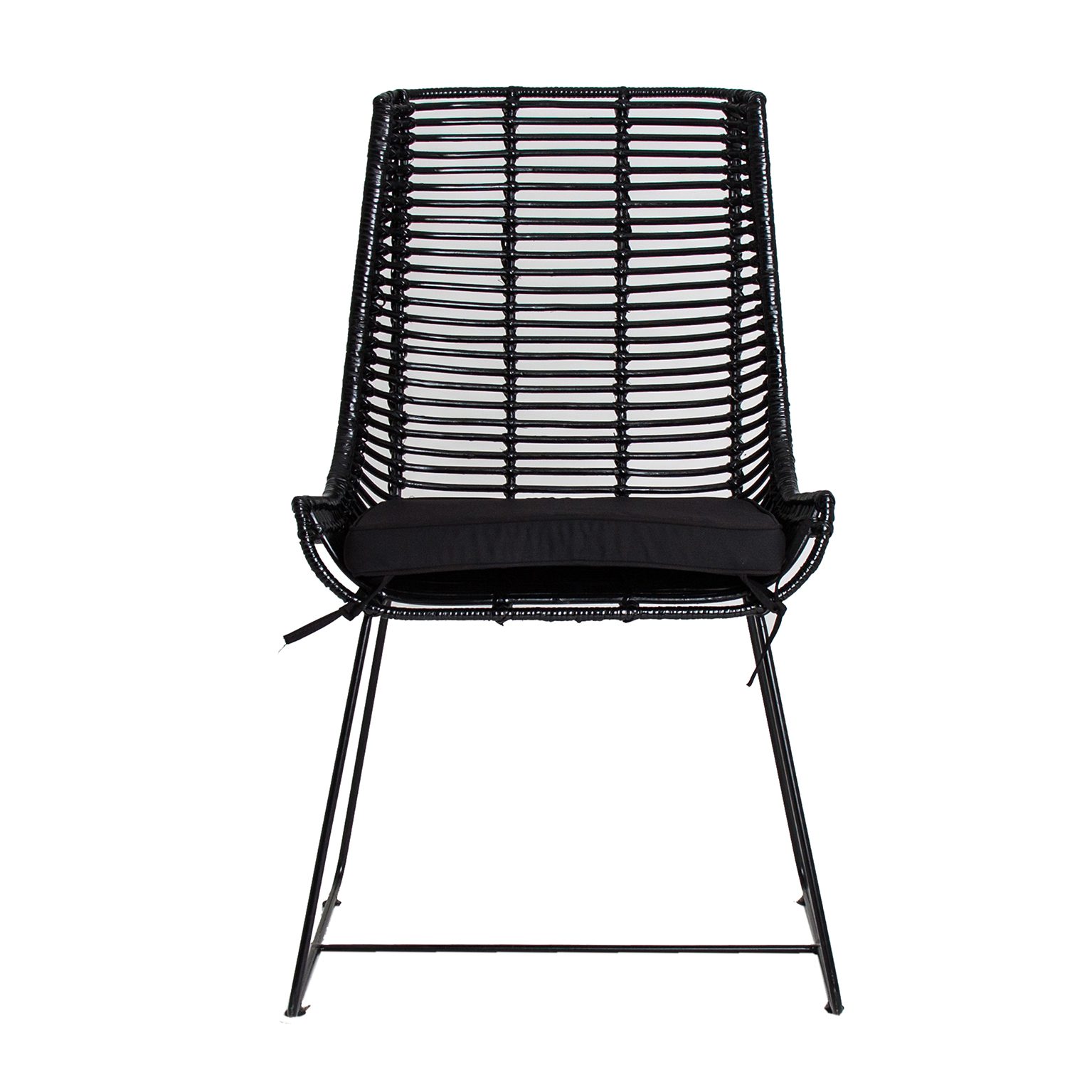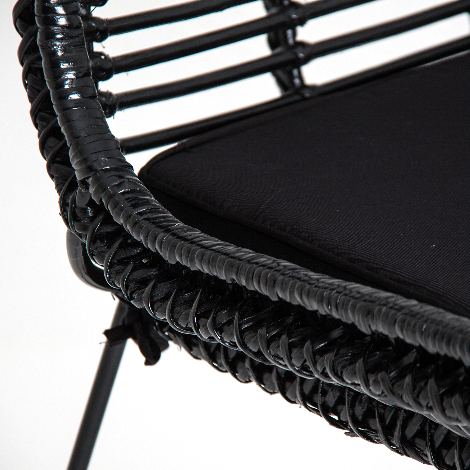 SILLA TILDEN, EN COLOR NEGRO, DE ESTILO CONTEMPORÁNEO. FABRICADO EN RATÁN, COMBINADO CON HIERRO Y ALGODÓN. INCLUYE COJÍN COLOR NEGRO.