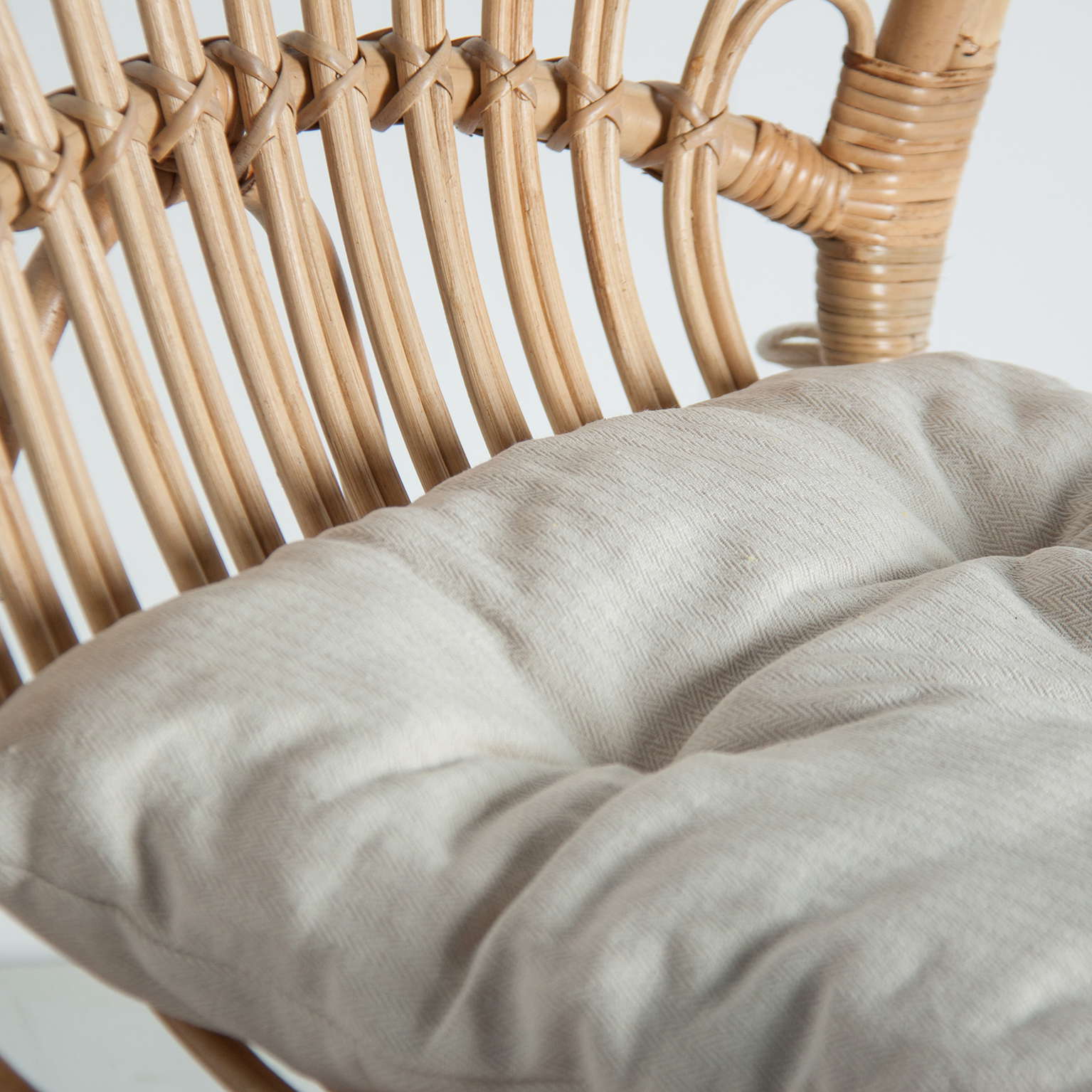 SILLÓN LIPSKO, EN COLOR NATURAL, DE ESTILO CONTEMPORÁNEO. FABRICADO EN RATÁN, COMBINADO CON ALGODÓN.
