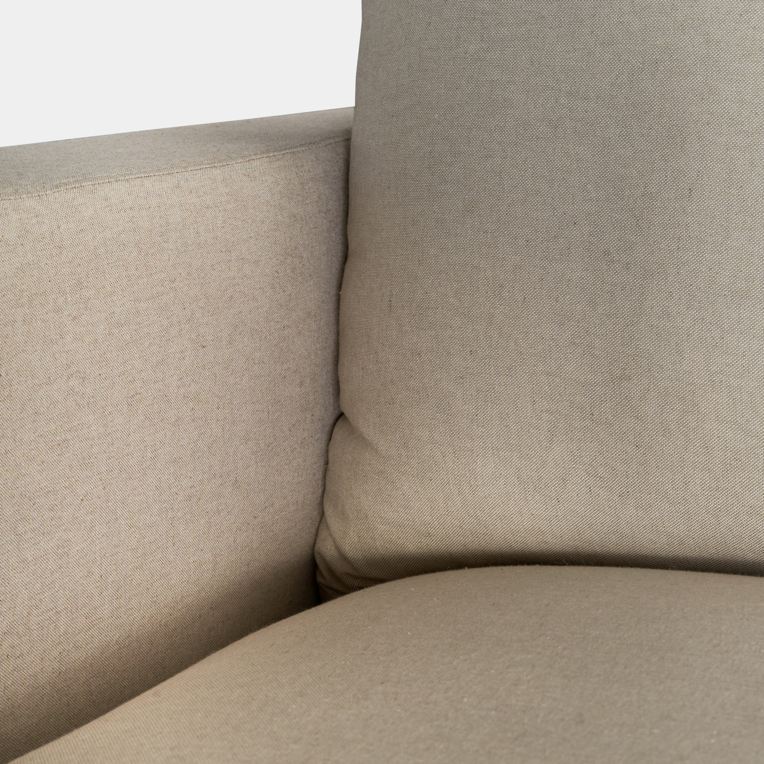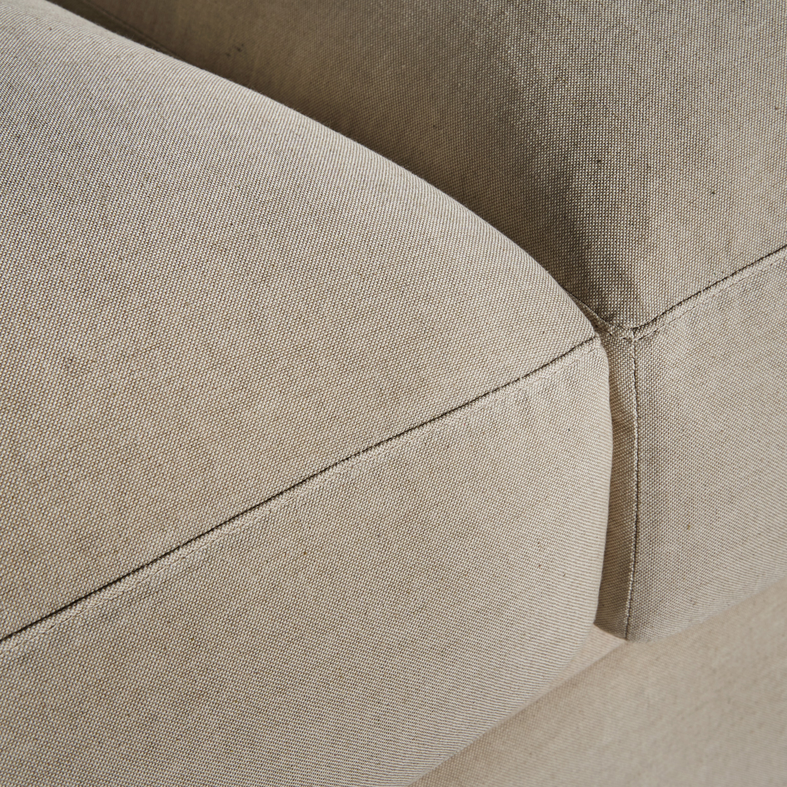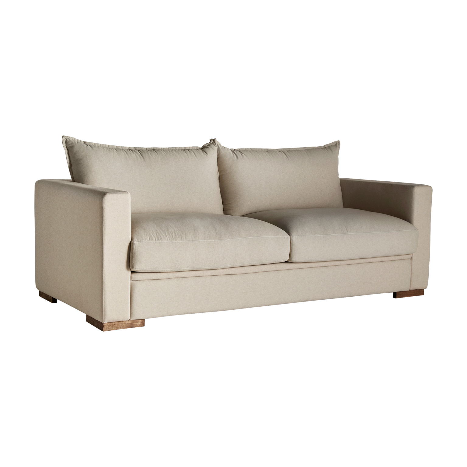 SOFÁ LESSONA, EN COLOR BEIGE, DE ESTILO CLÁSICO. FABRICADO EN POLIÉSTER, COMBINADO CON MADERA DE ABETO Y ESPUMA. PRODUCTO DESMONTABLE, DESENFUNDABLE.