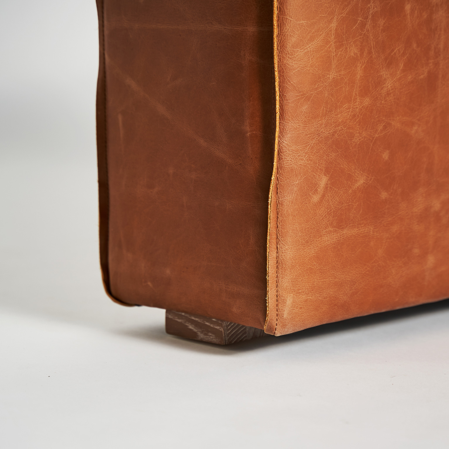 SOFÁ MODULAR AUBURN, EN COLOR MARRÓN, DE ESTILO VINTAGE. FABRICADO EN MADERA ABEDUL, COMBINADO CON PIEL Y ESPUMA. MÓDULO CON REF: 31305,31306.