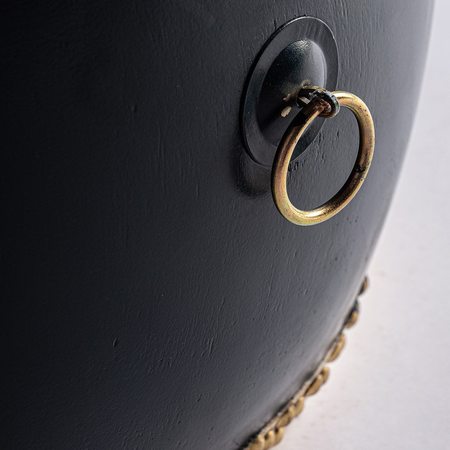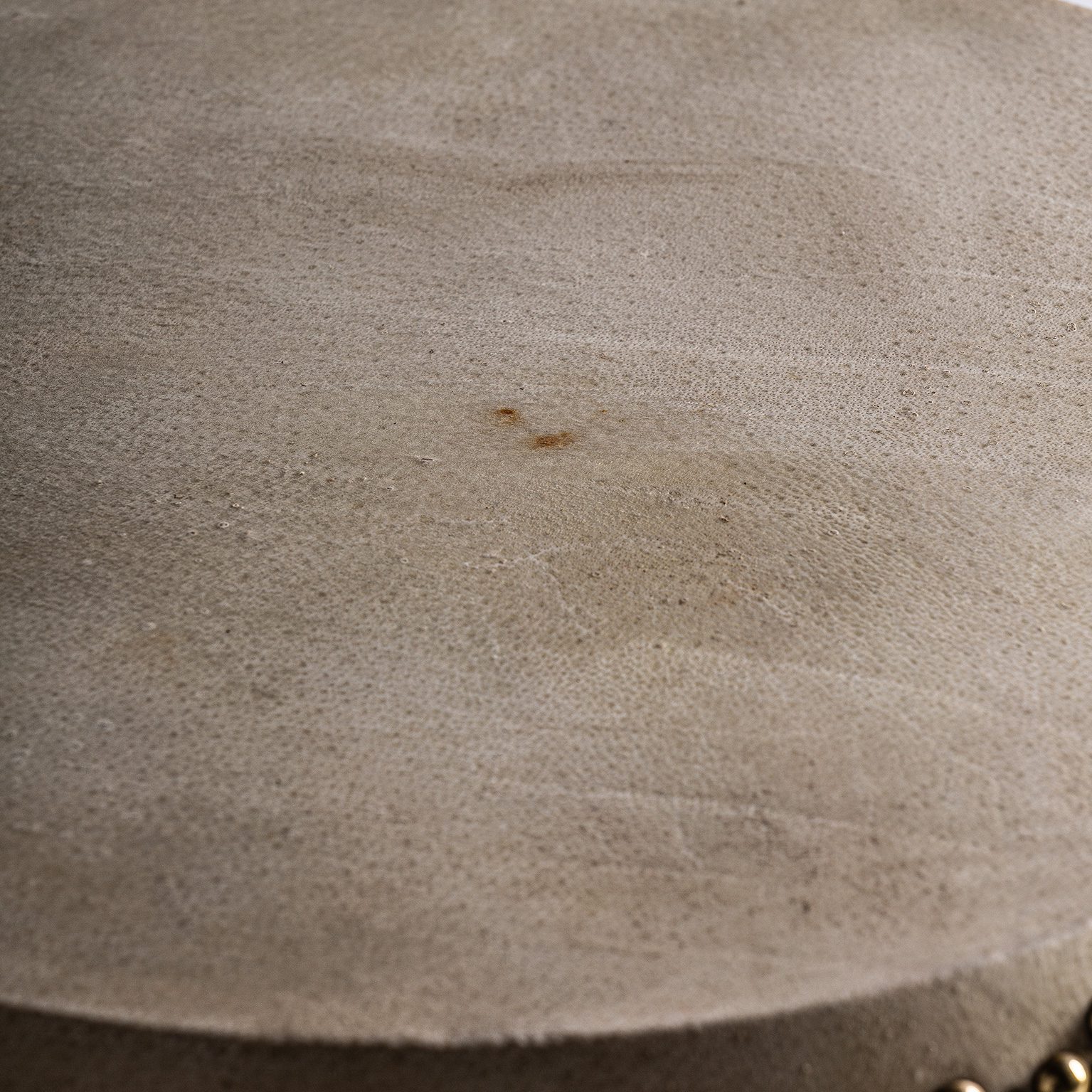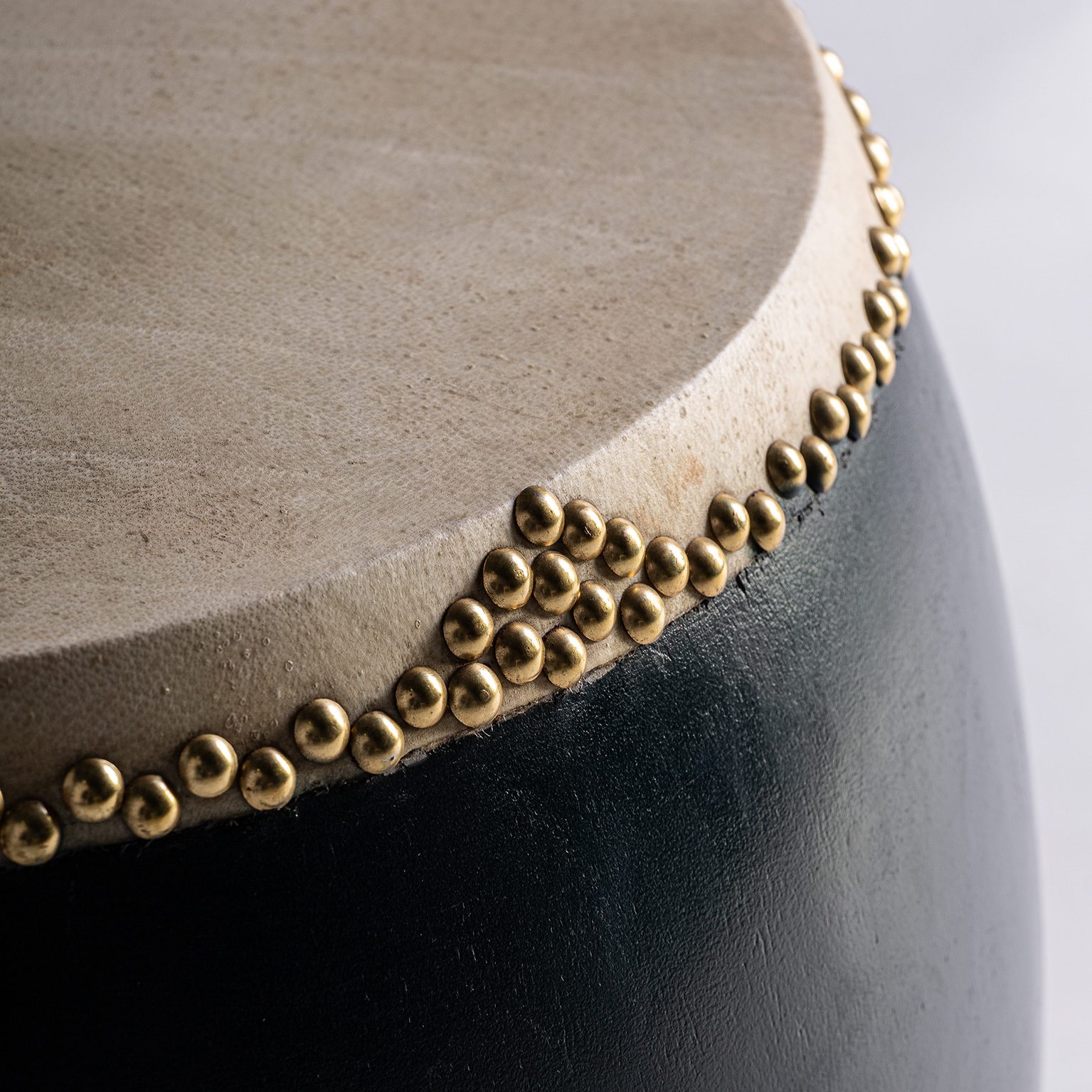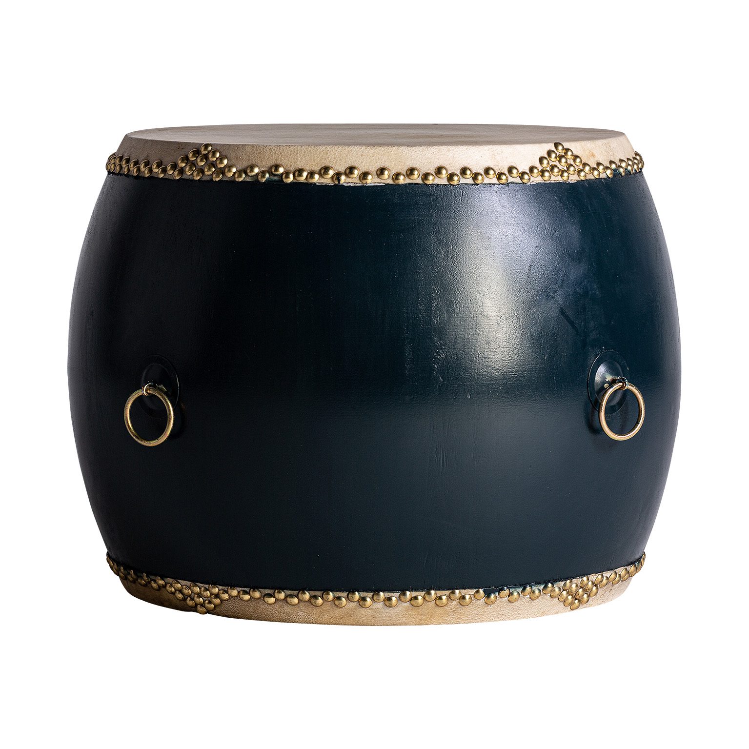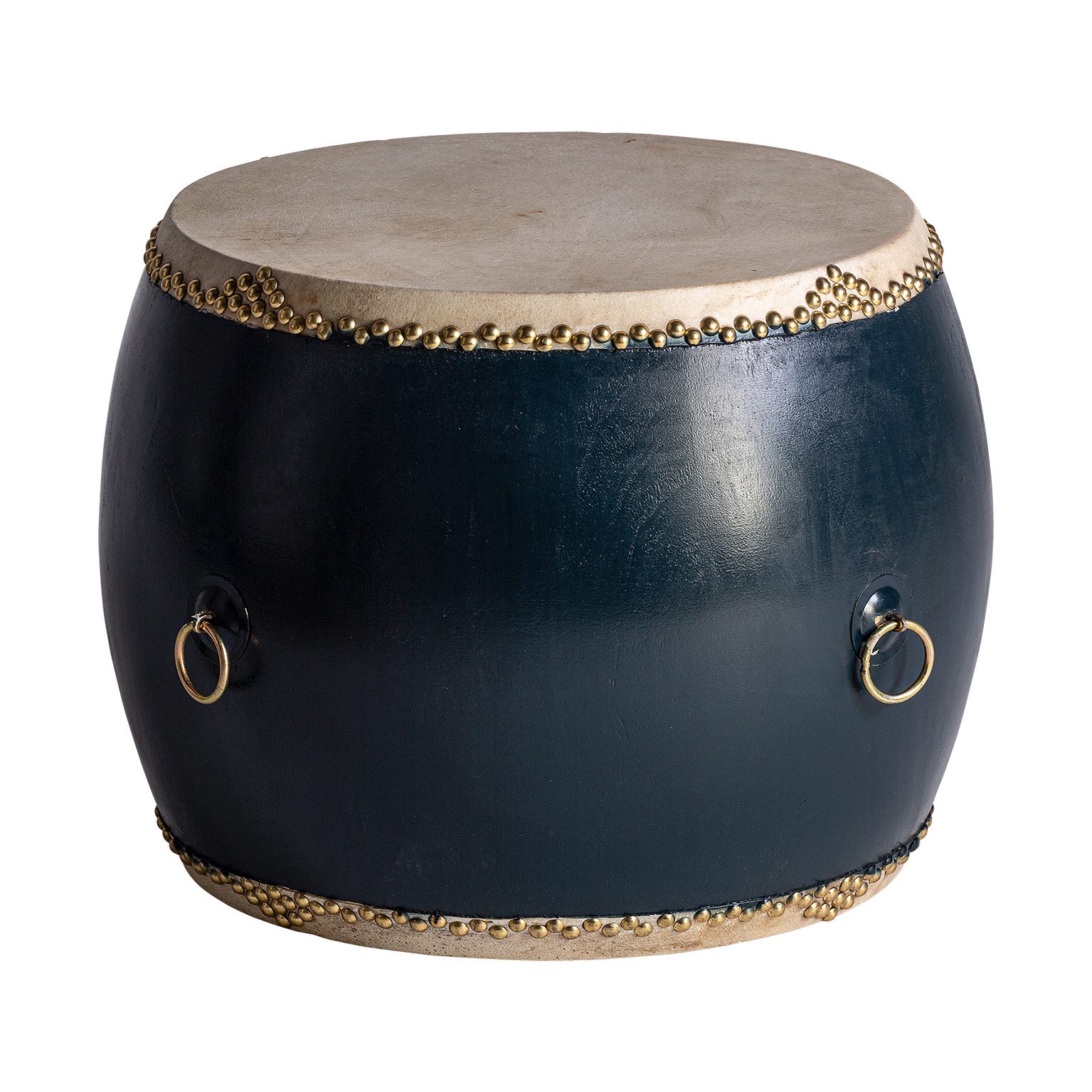 TABURETE DRUM, EN COLOR AZUL MARINO ENVEJECIDO, DE ESTILO ORIENTAL. FABRICADO EN MADERA DE OLMO.