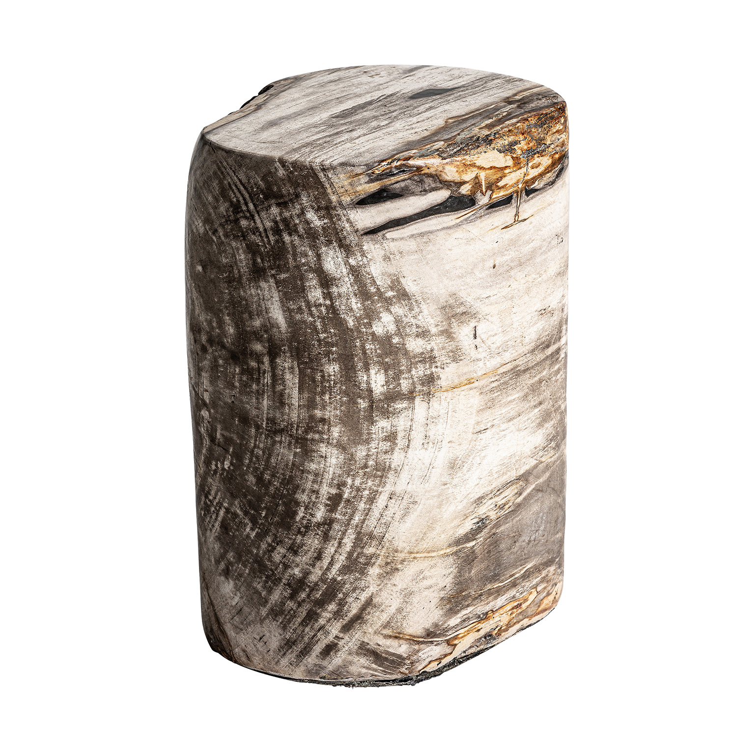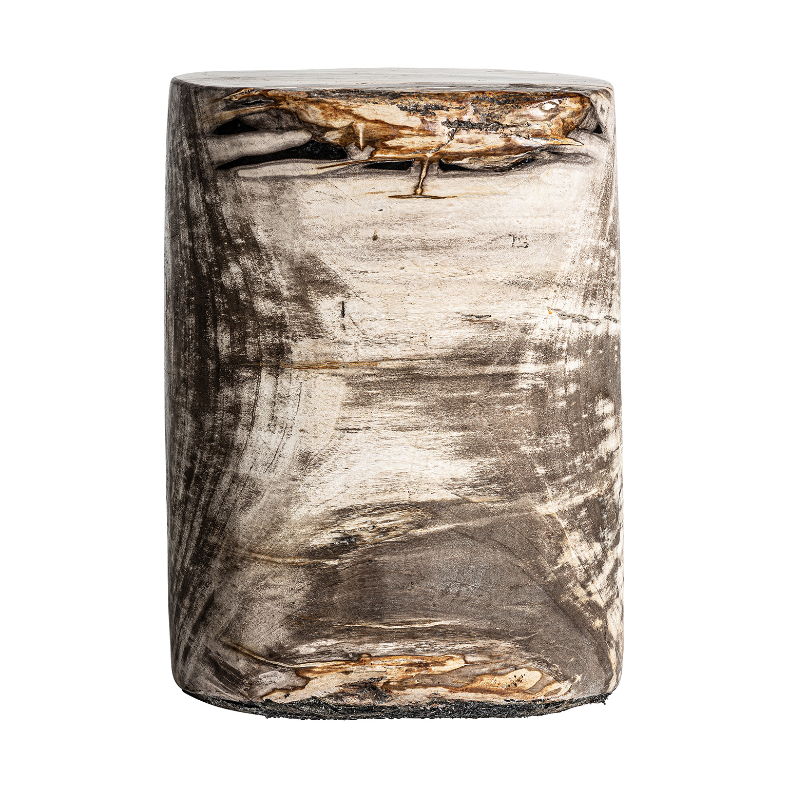 TABURETE TELTI, EN COLOR NATURAL/BLANCO ENVEJECIDO, DE ESTILO ÉTNICO. FABRICADO EN MADERA PETRIFICADA.