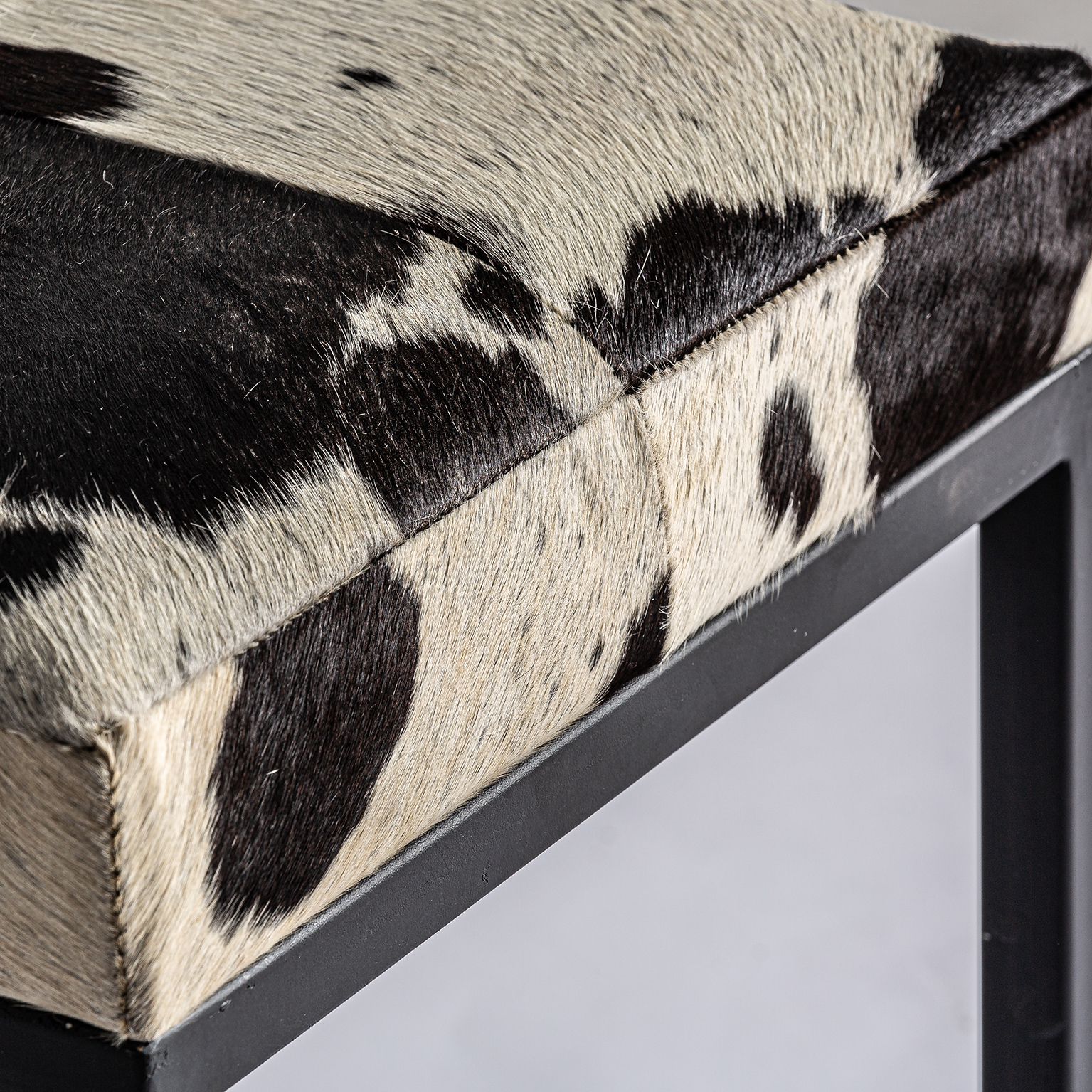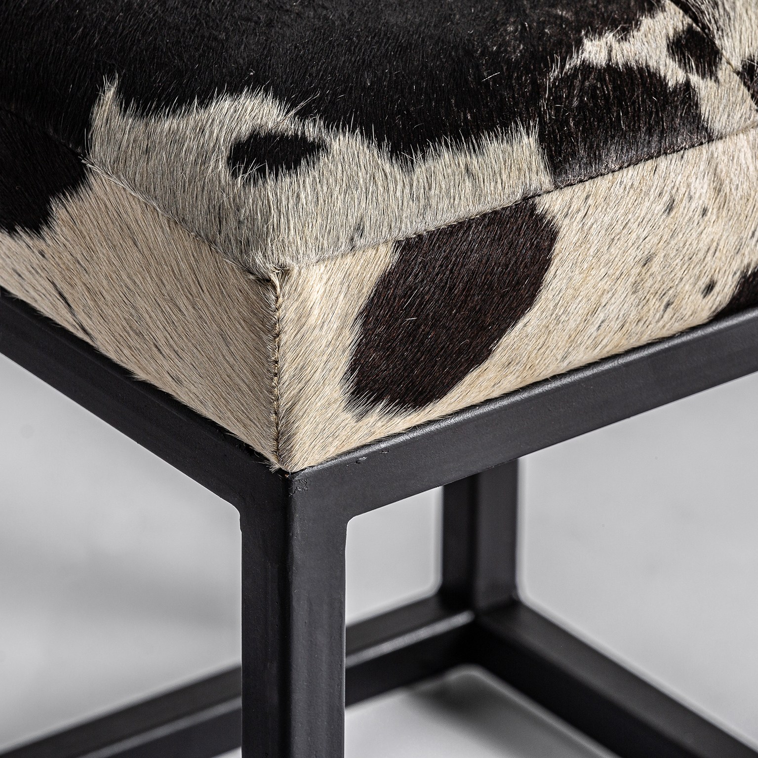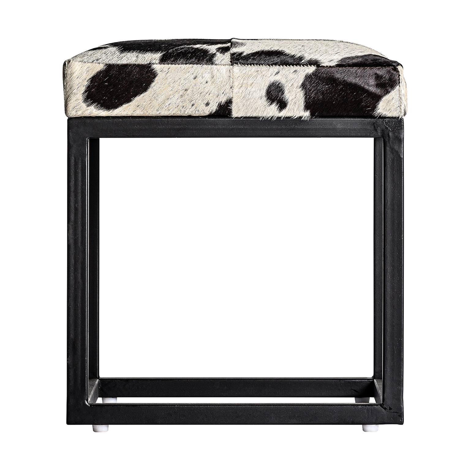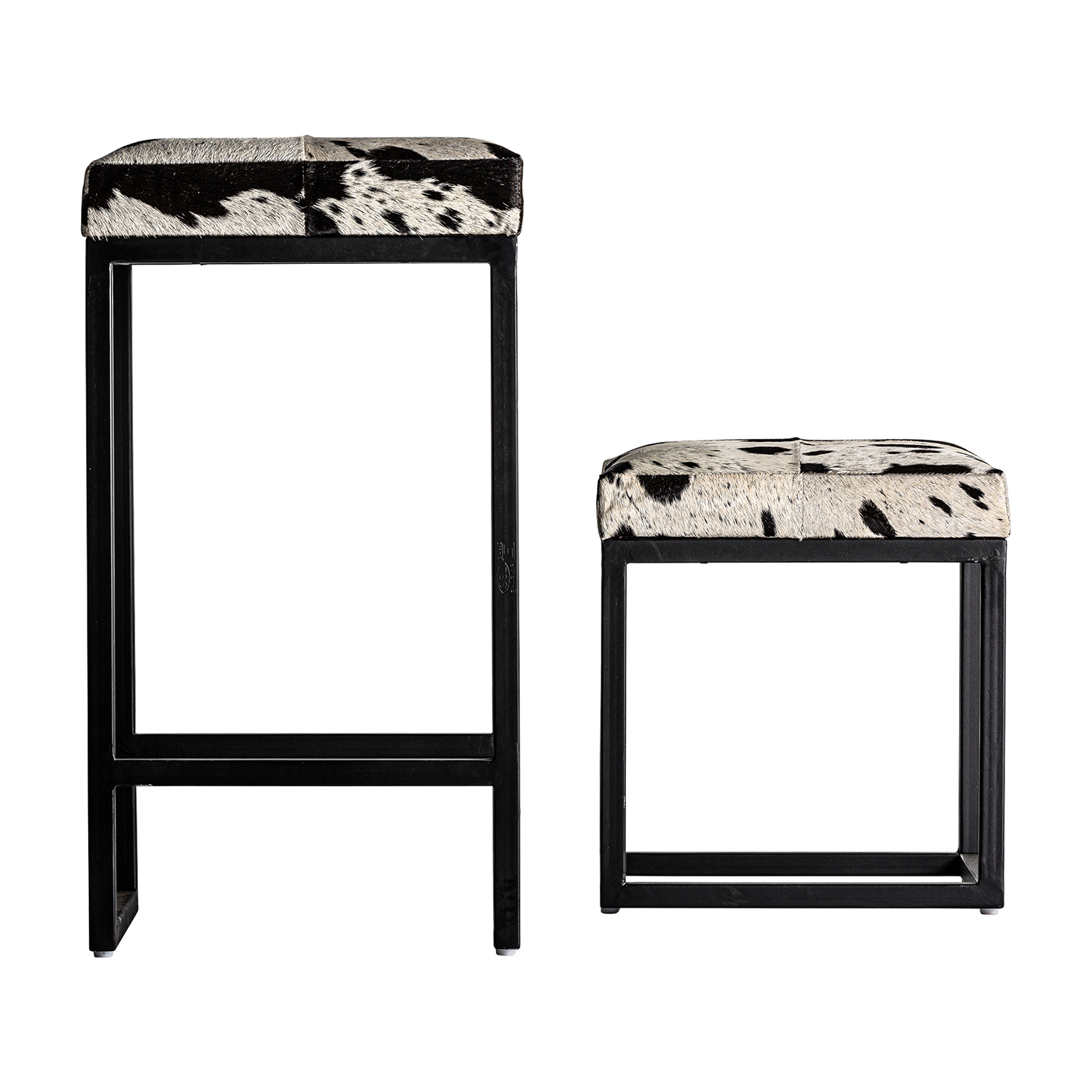 TABURETE WAUKUN, EN COLOR NEGRO/BLANCO, DE ESTILO NÓRDICO. FABRICADO EN CUERO, COMBINADO CON HIERRO.