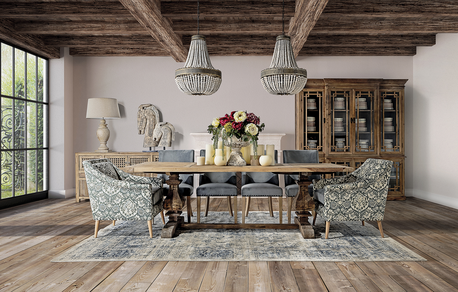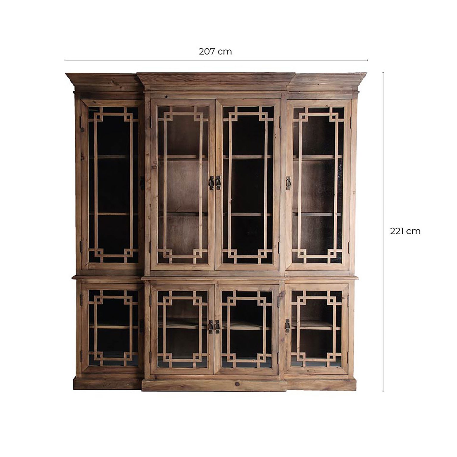 VITRINA CADORE, EN COLOR NATURAL, DE ESTILO COLONIAL. FABRICADO EN MADERA DE PINO RECICLADO.