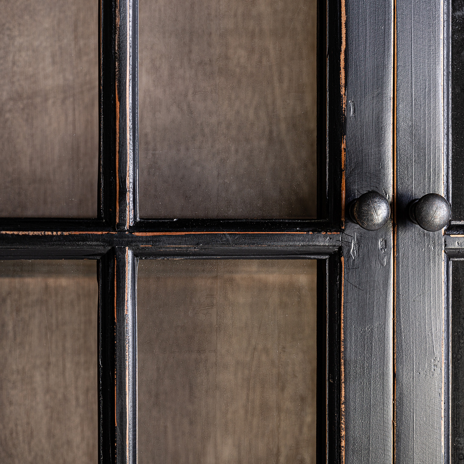 VITRINA ZENICA, EN COLOR NEGRO/NATURAL, DE ESTILO PROVENZAL. FABRICADO EN MADERA DE OLMO.